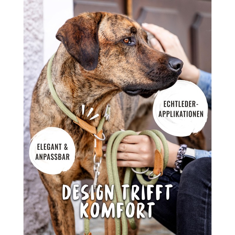 Rudelkönig Emma Dog Collar - Elegant Pull Stop Collar Made of Leather and Nylon - Diameter 12 mm - Comfortable Training Collar for Very Large Dogs in Khaki