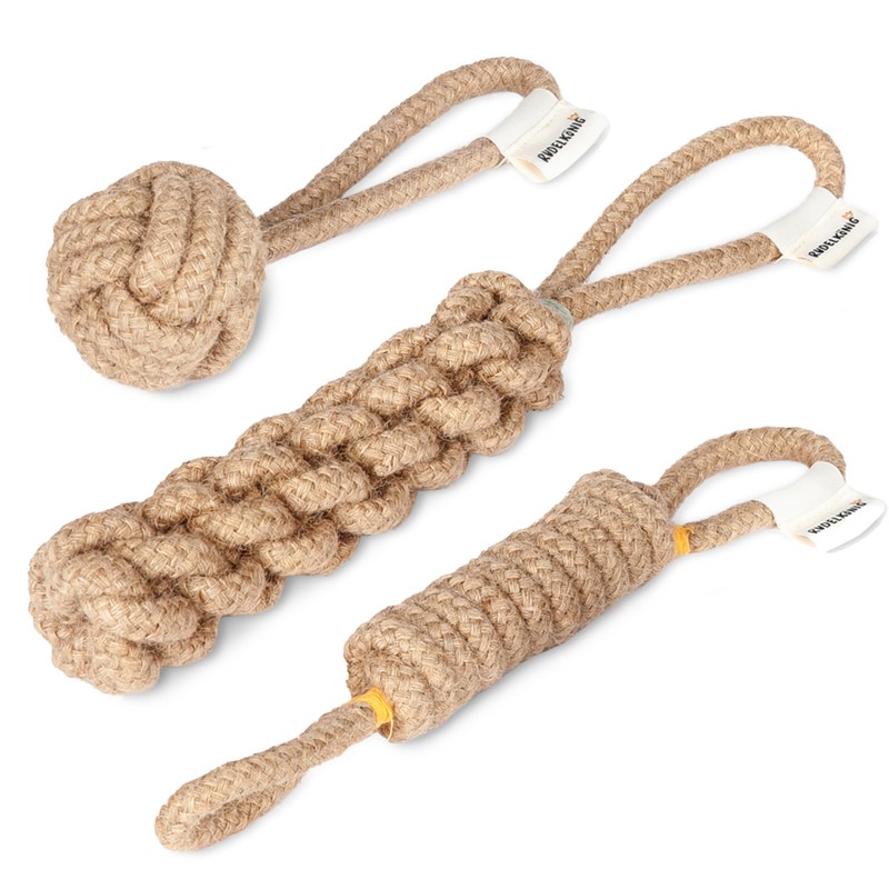 - Robust and tear-resistant for great fun – our three-piece rope dog toy is particularly resilient and sustainable thanks to natural hemp
