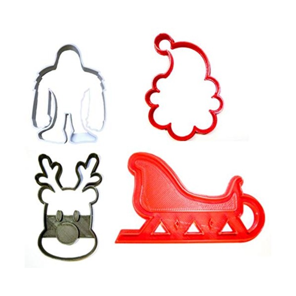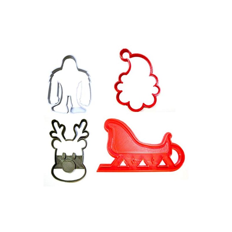 RUDOLPH THE RED NOSED REINDEER SANTA CLAUS SLEIGH YETI CHRISTMAS MOVIE ANIMATION SET OF 4 SPECIAL OCCASION COOKIE CUTTER BAKING TOOL 3D PRINTED MADE IN USA PR1284