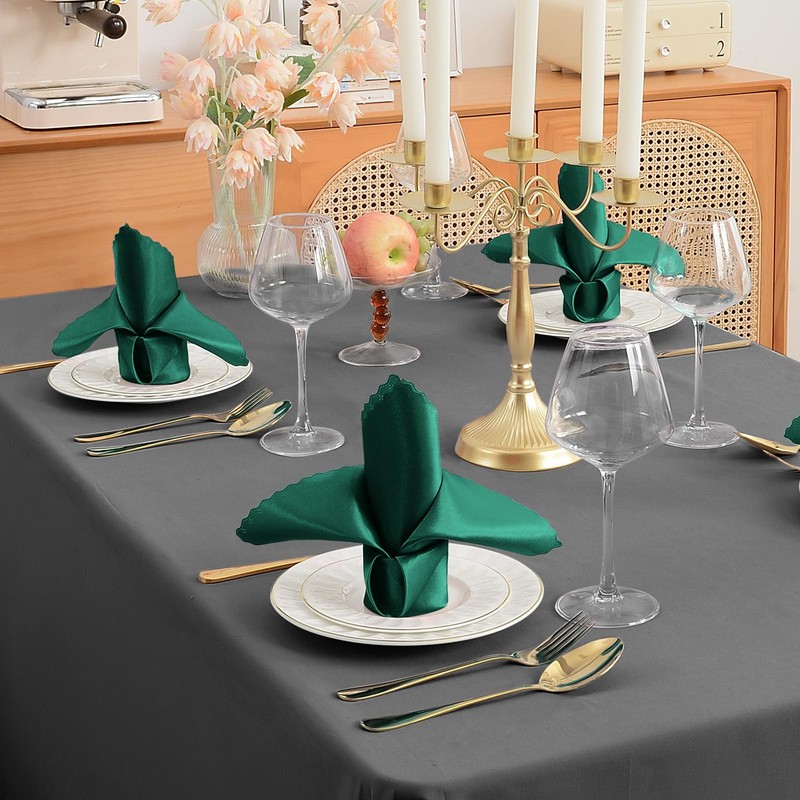 - Square Dinner Napkins: 72 pieces hunter green satin napkins in size 17 x 17 Inch. Made of smooth and bright satin fabric, basic solid colors are suitable for variety of occasions. Satin napkins bulk with sufficient amount can meet your everyday or formal demands.