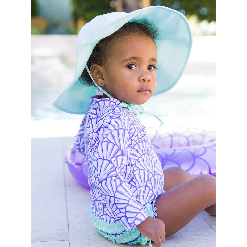 RuffleButts® Baby/Toddler Girls Baby/Toddler Sun Hat with UPF 50+ Sun Protection and Floppy Wide Brim - Mint, 6-12m