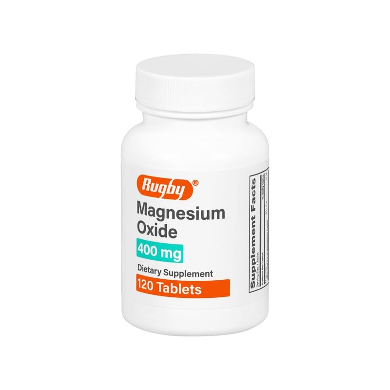Rugby Magnesium Oxide 400 mg Tablets - Dietary Supplement - Gluten-Free - 120 Count (1 Pack)