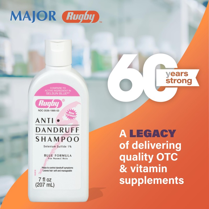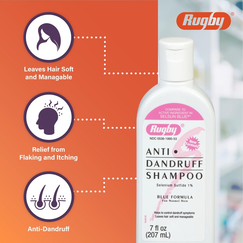 Rugby Selenium Sulfide Anti-Dandruff Shampoo - Blue Formula for Normal Hair - 7 Oz (1-Pack)