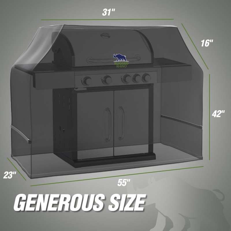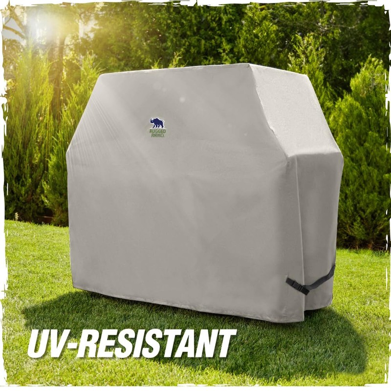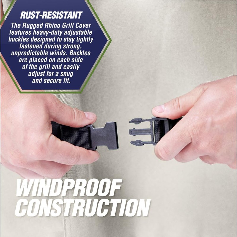 Rugged Rhino All Season Heavy Duty Grill Cover, Three Layer Waterproof UV Resistant and Windproof Covers for Outdoor, Secure Buckle Closure, Grilling Griddle Storage Outside, 55"L x 23"W x 42"H, Beige