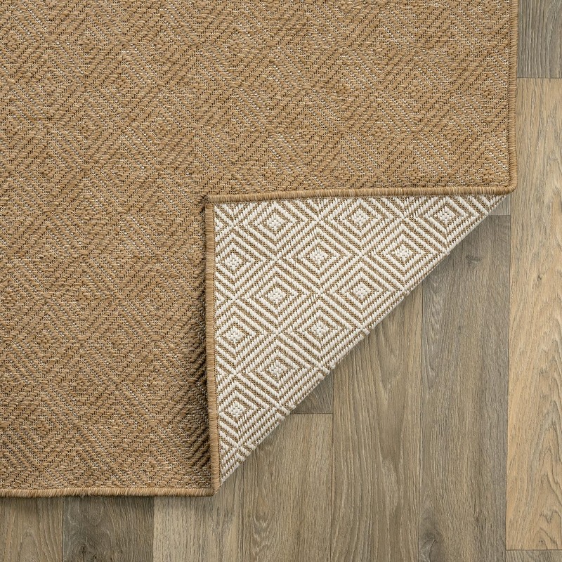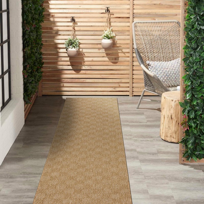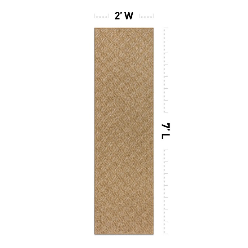 Rugshop Natural Easy Jute Reversible Indoor Outdoor Runner Rug – Cube Geometric Pattern, Weather-Resistant Low-Pile Flatweave Carpet for Patio, Deck, Porch & Entryway 2' x 7' Natural