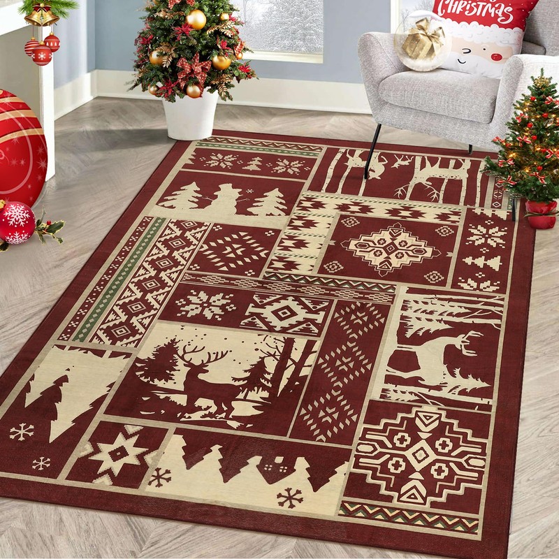RUGSREAL Christmas Area Rug Farmhouse Decorative Area Rug Rustic Buffalo Elk Indoor Throw Rug Xmas Area Rug Boho Area Rug Washable Area Rug for Bedroom Living Room Kitchen Nursery, Red 4' x 6'