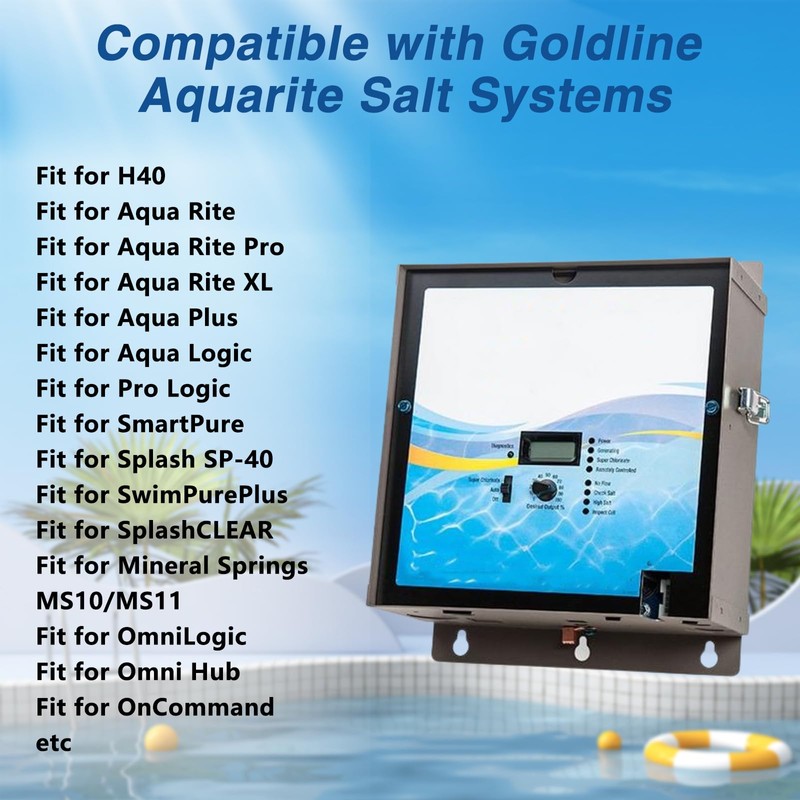 - 【Compatible with】: This flow switch is compatible with Goldline Aquarite Salt Systems. For H40; Aqua Rite; Aqua Rite Pro; Aqua Rite XL; Aqua Plus; Aqua Logic; Pro Logic; SmartPure; Splash SP-40; SwimPurePlus; SplashCLEAR; Mineral Springs MS10/MS11; OmniLogic; Omni Hub; OnCommand, etc.