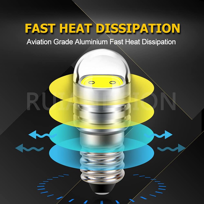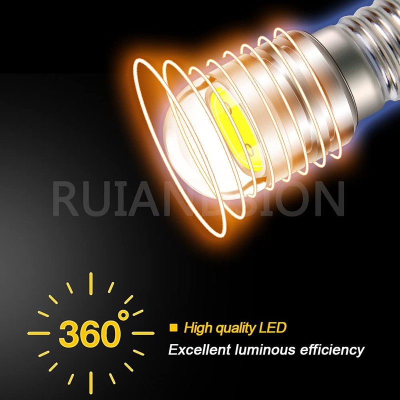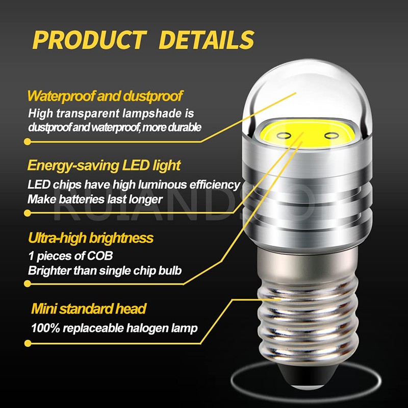 Ruiandsion 2pcs 6V E10 Base LED Upgrade Bulb COB 2W Replacement Headlight Flashlight Torch Bulb, White