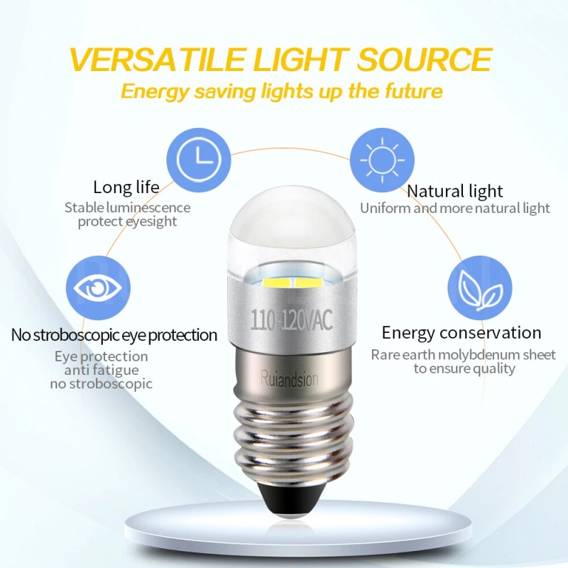 Ruiandsion 5pcs Screw Base White E10 110V AC/DC LED Bulb Repalcement for Indicator Light