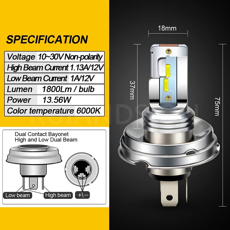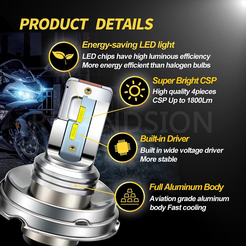 Ruiandsion P45T H5 R2 LED Headlight Bulb White DC 10-30V Super Bright CSP 4SMD Chipsets LED Bulb for Auto Moto Front Headlight