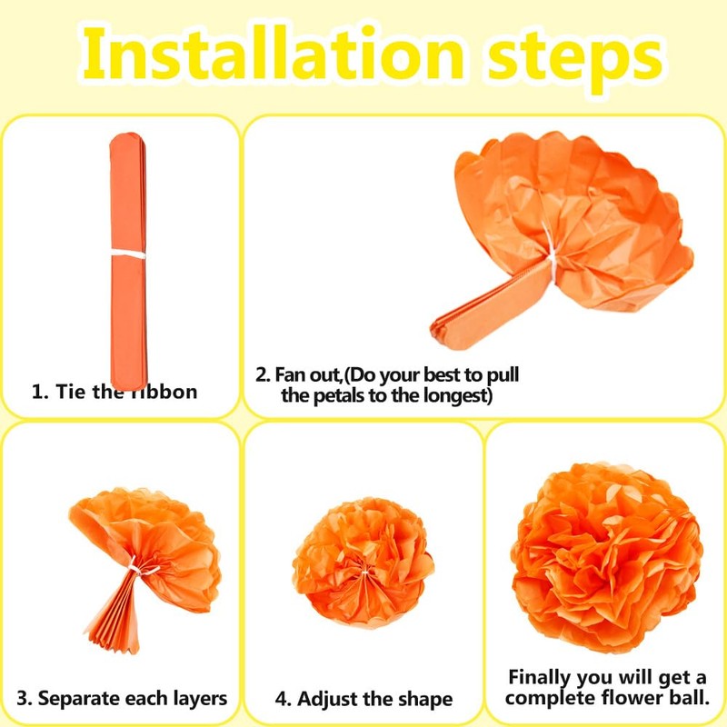 - ❀ Application: Paper pom pom flower decorations can be hung from branches, ceilings, or placed on tables and other places for decorating parties, celebrations, birthdays, weddings and other events.