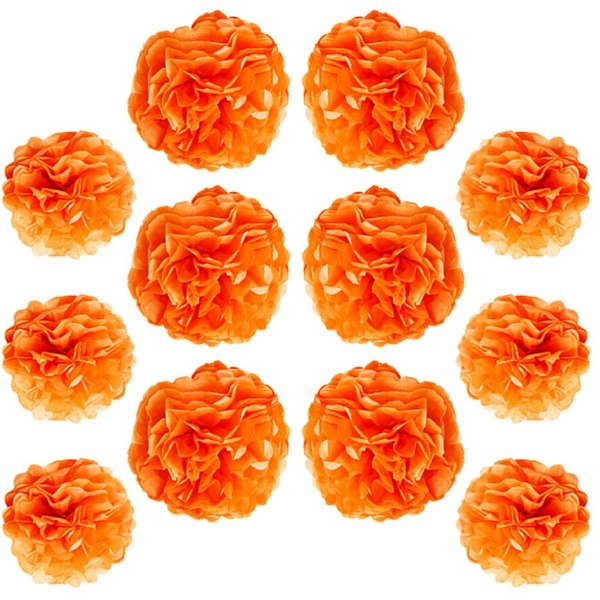 Ruidee 12 Pieces Tissue Paper Pompoms 10in and 12in Hanging Tissue Flowers Decorations Colour Paper Flower Ball Paper Flowers Pom Poms for Party Wedding Decoration (ZH/Orange)
