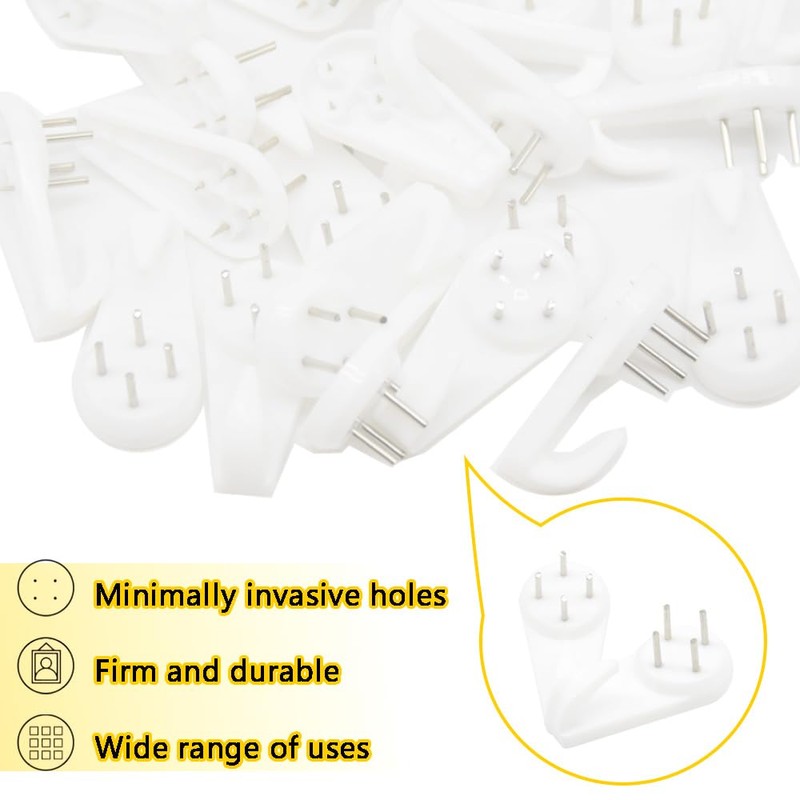 Material : Plastic hook body with metal invisible nails, minimal damage to the wall, good weight bearing.