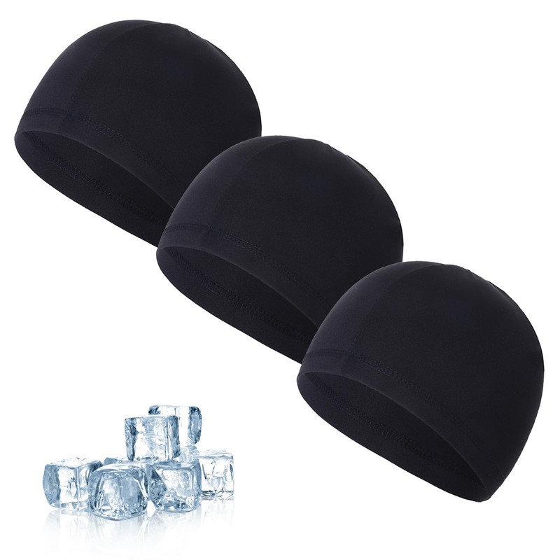 RUIOMII 3 Packs Black Skull Cap, Quick Drying Breathable Sweat Absorbing Wave Cap, Summer Sports Hat Running Hat for Women Men for Cycling Running