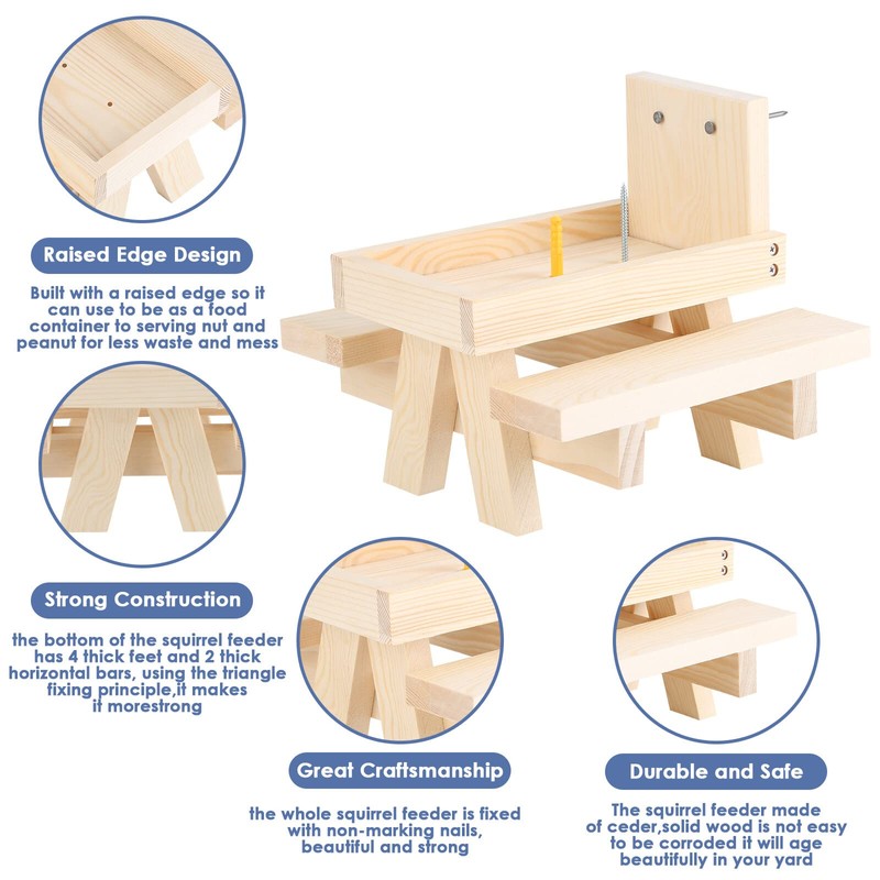 - 🐿️【Unique Gift】Perfect gift for animal or nature lovers, the squirrel picnic bench feeder is suitable for feeding squirrels, chipmunks, small birds and more.