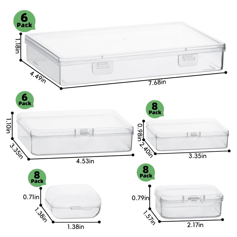 - 【Value 36 Pack Plastic Organizer】: You will receive three sizes of storage boxes: 6 pieces (7.68 x 4.49 x 1.18 inch), 6 pieces (4.53 x 3.35 x 1.1 inch), 8 pieces (3.35 x 2.4 x 0.98 inch), 8 pieces (2.17 x 1.57 x 0.79 inch), and 8 pieces (1.38 x 1.38 x 0.71 inch). These 36-pack organizers will meet all your different storage needs.