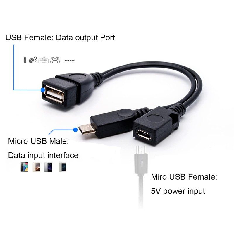 • Micro USB to USB OTG Adapter 2-in-1 Cable with OTG and Power features