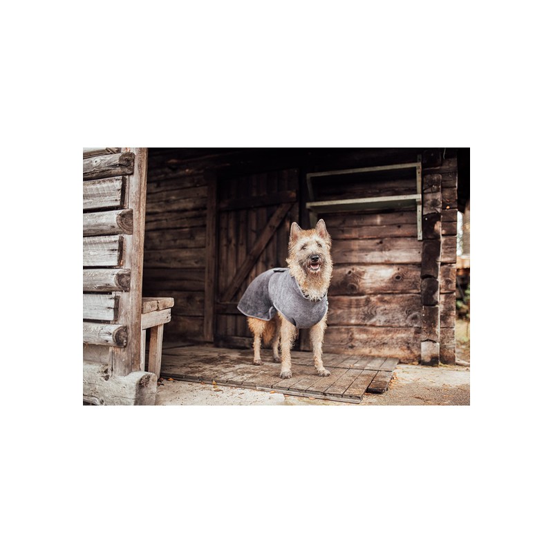 - Extremely absorbent microfibre bathrobe. Dries the coat and keeps your dog warm after shower, bath, swimming or a walk in the rain.
