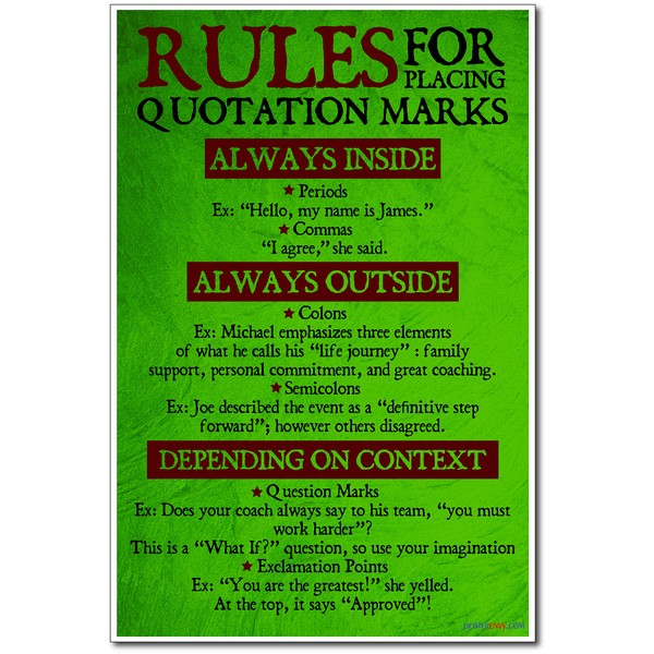 - Rules for Placing Quotation Marks - NEW Classroom Language Arts Poster