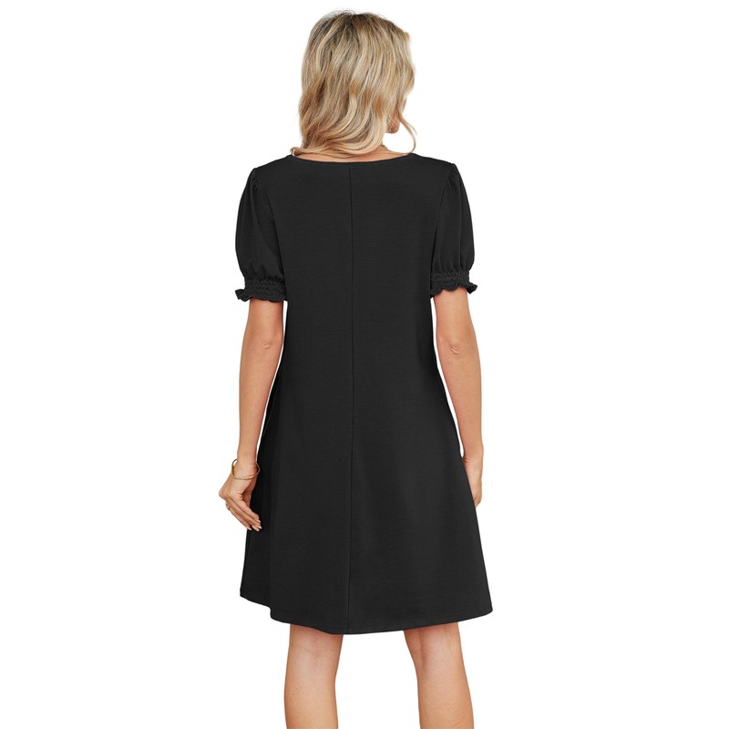 RUMIA Summer Dresses for Women 2025 Casual Cute Square Neck Puff Short Sleeve Dress with Pockets (Black M)