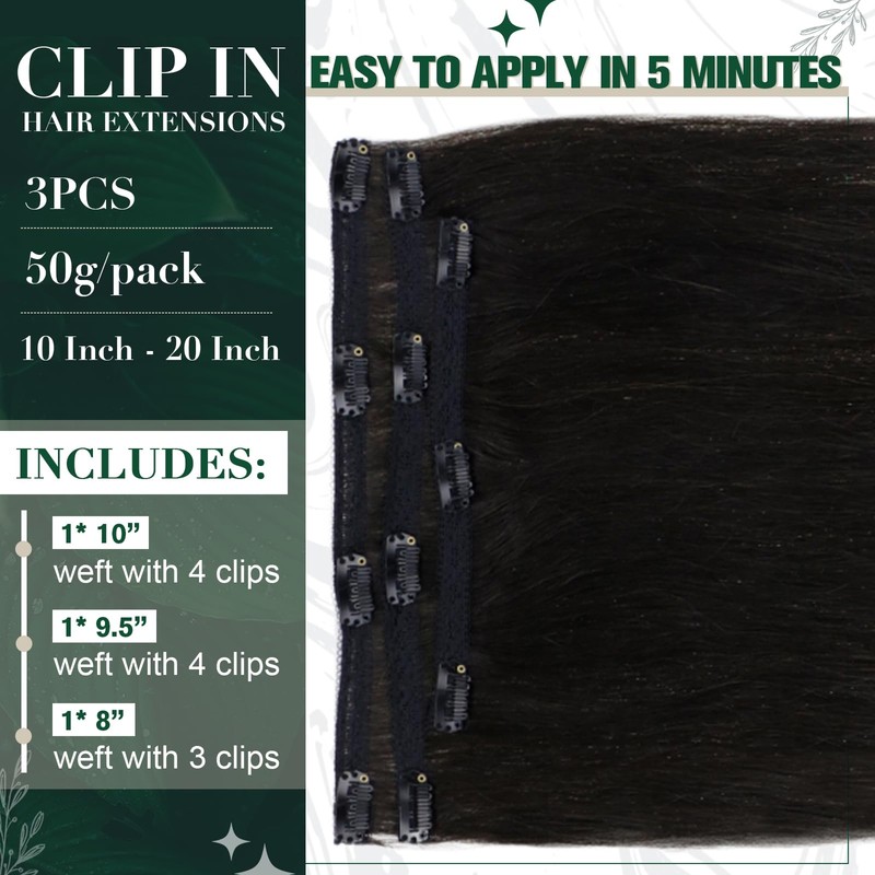 - Easy to use: Pack of 3 clip-in real hair extensions, you can insert the clip-in extensions yourself in 3 minutes; with strong U-shaped clips made of stainless steel, they can be attached to your own hair without causing damage.
