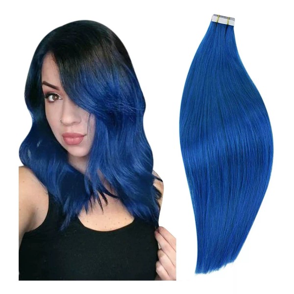 Cinta azul de runatura en extensiones de cabello cabello humano de 14 pulgadas de color rescatado de color humado extensiones de cabello en extensiones de cabello humano sin costuras 20 pulgadas 10pcs
