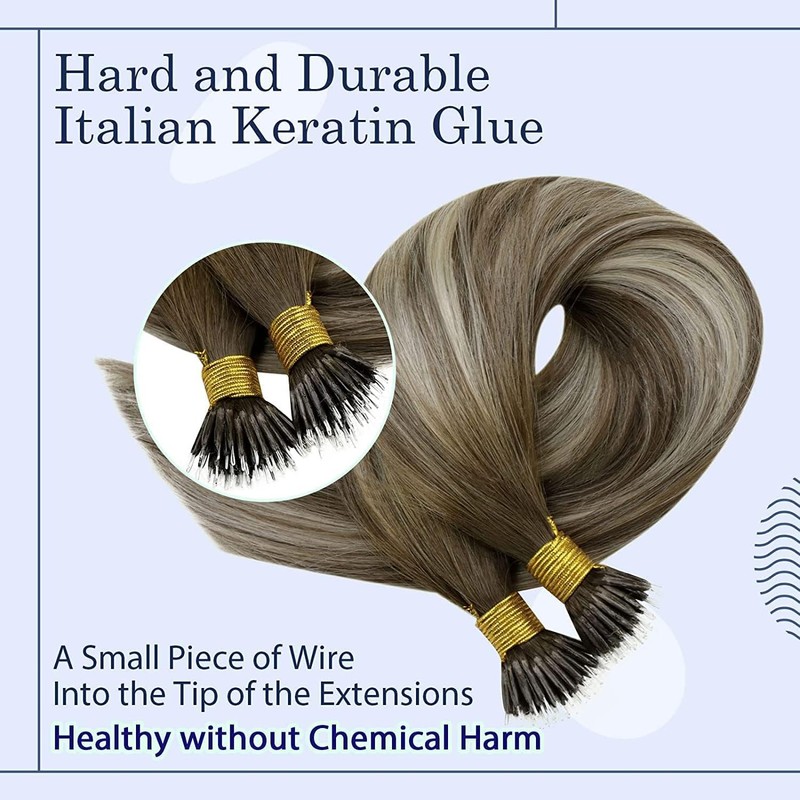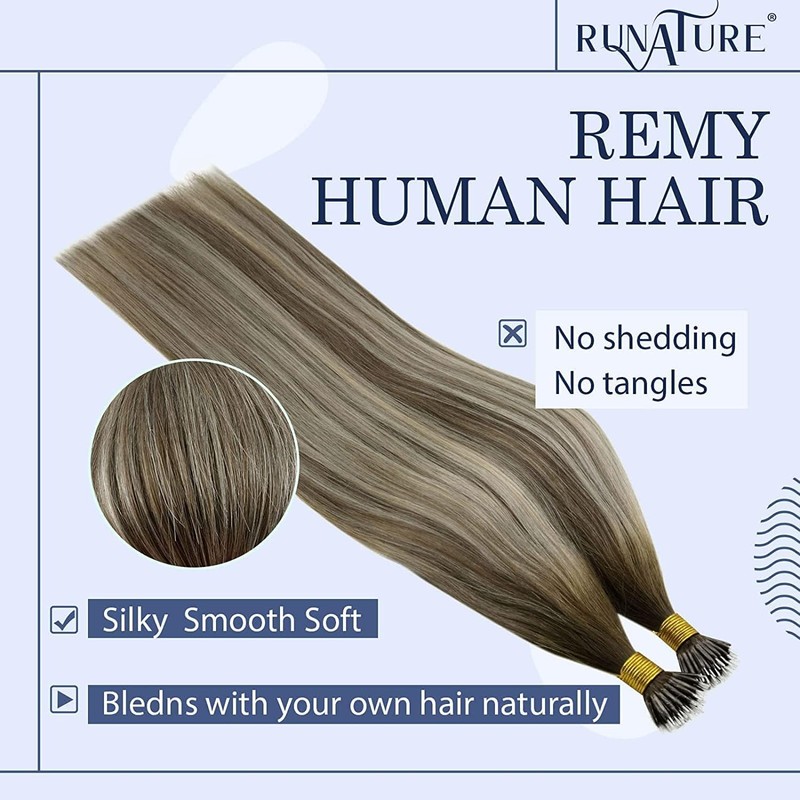 - RUNATURE Nano Hair Extensions Balayage Blonde to Brown Human Hair Nano Extensions Blonde Nano Ring Hair Extensions Real Human Hair Ombre Nano Hair Straight 14 Inches 50g
