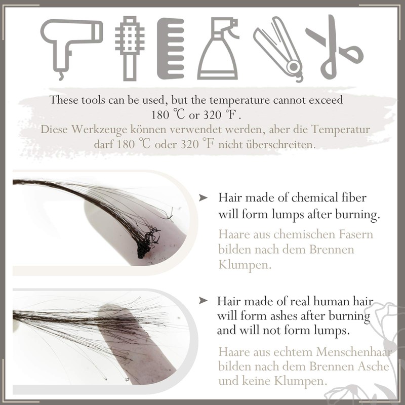 • - The extensions can be curled, straightened, dyed, washed and combed like your own hair. However, the temperature is better below 180 °C. Service life: 3–12 months (depending on care and use).