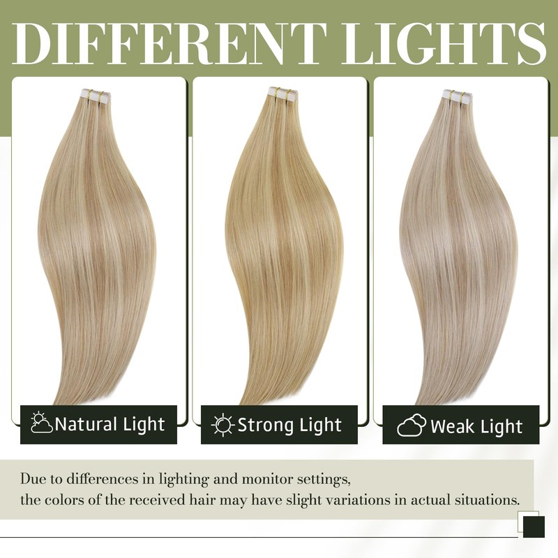 RUNATURE Tape-In Real Hair Extensions Long Ash Blonde with Platinum Blonde Invisible Tape-In Extensions Real Hair 20 Pieces 50 g 55 cm 22 Inches #18P60