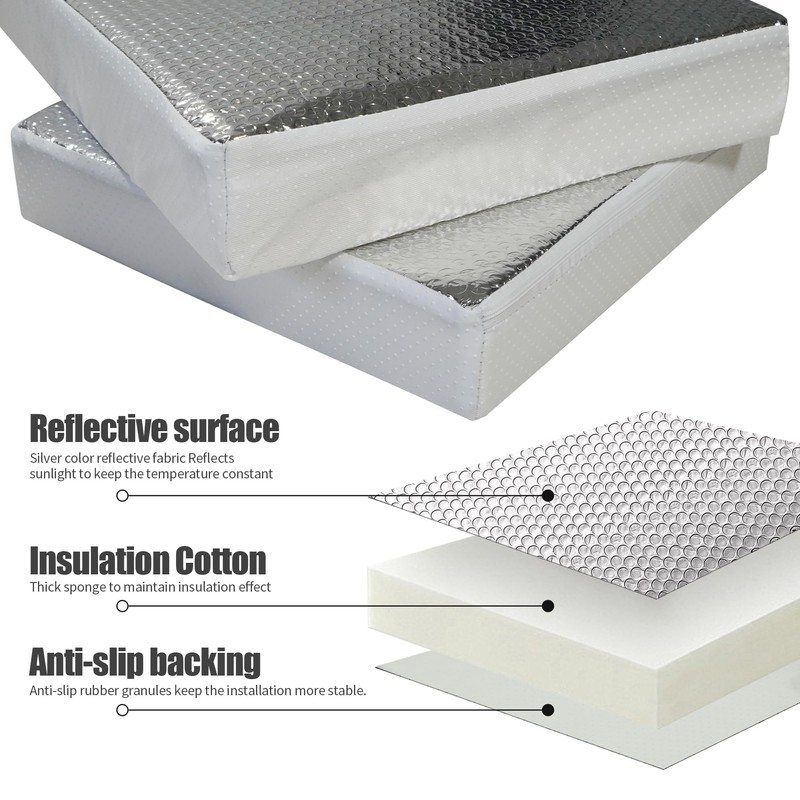 - Advantage: product surface with reflective coating, 3" thickness, suitable for 22 * 14 inches RV vents, compatible with most RVs and campers, place the side with reflective coating outside to refract the sun's rays. 3" thickness can effectively prevent hot air from entering in the summer to keep the inside of the car cool, and prevent the hot air from escaping in the winter to keep the inside of the car temperature warm.
