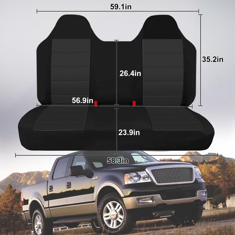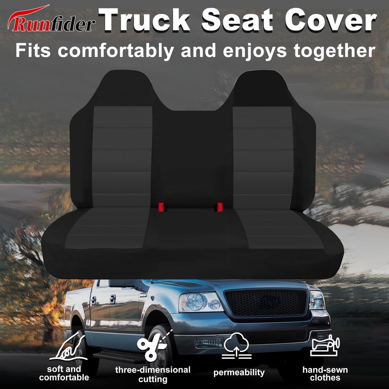 - Model: These Runfider seat covers are precision-designed for the front bench seats (60/40 split configuration) of for Ford F150 trucks from 1999 to 2004. The one-piece molded headrest design ensures complete coverage while maintaining easy access to factory seat controls. The thickened Oxford fabric contours perfectly to your factory seats without bunching or sliding during use.