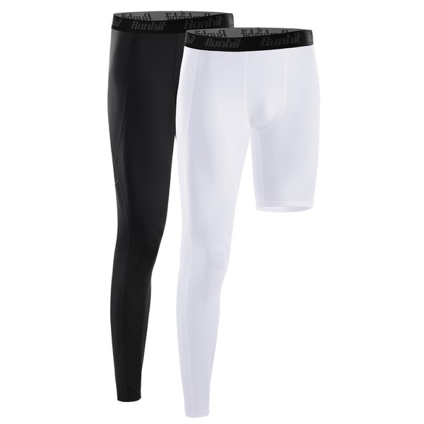 Runhit 2 Pack Men's Basketball One Leg Tight Full Length Single Leg Sports Pants 1/2 Compression Pants Athletic Base Layer Underwear Right Long XL