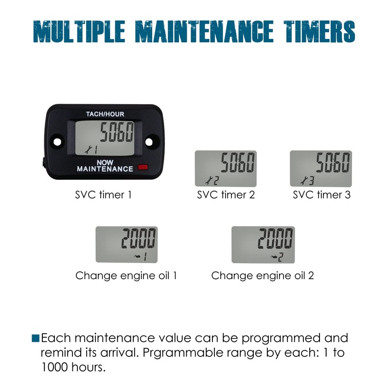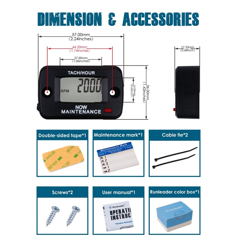 Runleader Self Powered Hours Tachometer, Maintenance Reminders for Garden Lawn Tractor Wood Splitter Generator Compressor Marine Jet Ski Scooter Snow Blower Paramotor