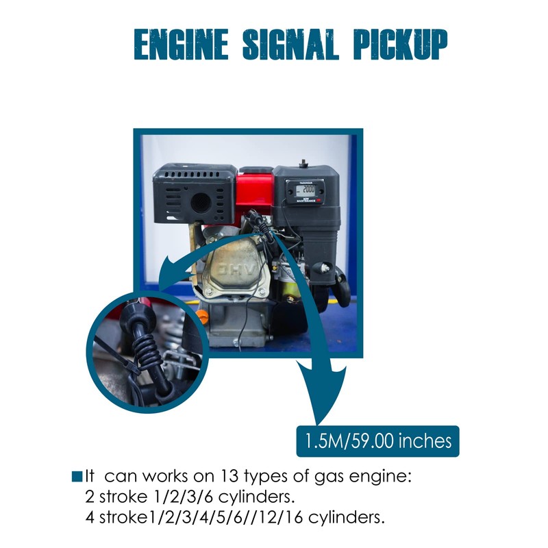 - ☞ RPM ---- Help you adjust the correct engine speed to improve machine performance; different engine ignition patterns can be selected to correct the speed accuracy; Speed measuring range: 0 to 25000 rpm.