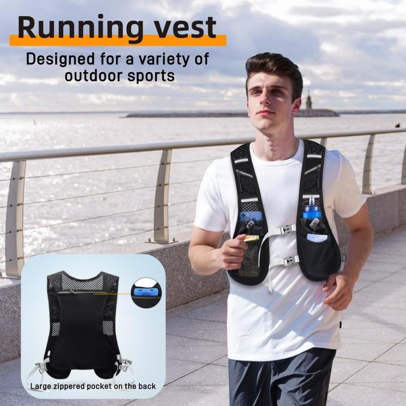 Running Vest for Men and Women, Ultralight Running Vest, Running Backpack, Hydration Backpack for Running, Universally Adjustable and Hydration Vest Running with Water Bottle, Reflective Hydration