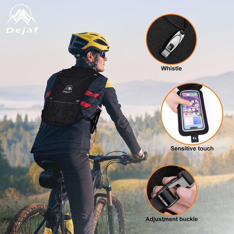 • DETAILS MASTER:From the initial pockets, whistles, elastic bands in 4 different positions, breathable mesh, water-repellent materials, reflective strips, the durability of needles and threads to the unique mobile phone storage, what is finally presented to you is the efforts of countless DEJAF people, just to have a truly comfortable and convenient running vest during exercise