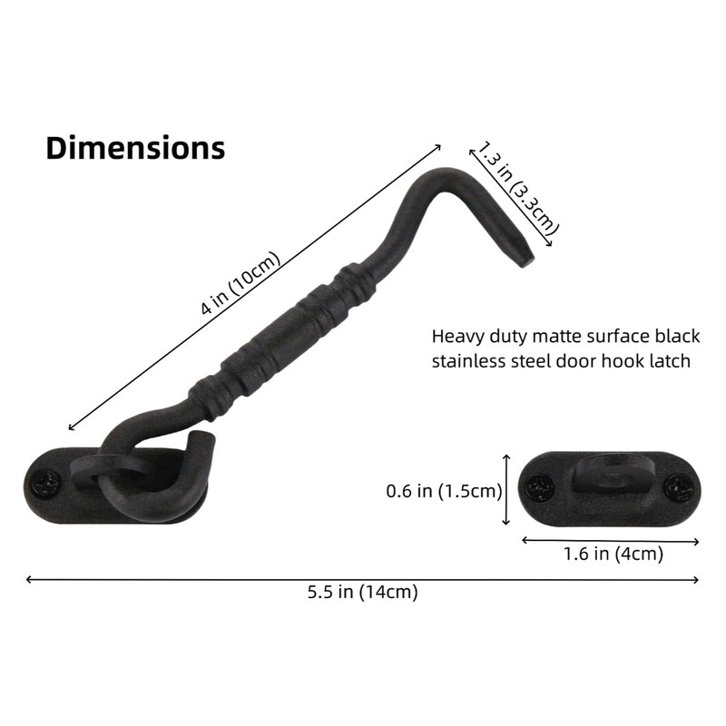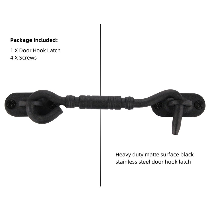 • 【Lengthening thickening device】【Best For Any Environment】- Upgrade Heavy Duty Barn Door Lock latch bolder Gate Latch Lock ,extra longer thicken Cabin Hooks,6 inches Solid black Privacy Hook and Eye Latch, Door lock hook has longer hook and matches more accurately with the eye open angle with the optimal curvature better than normal cabin hook to keep security and privacy to a greater extent.