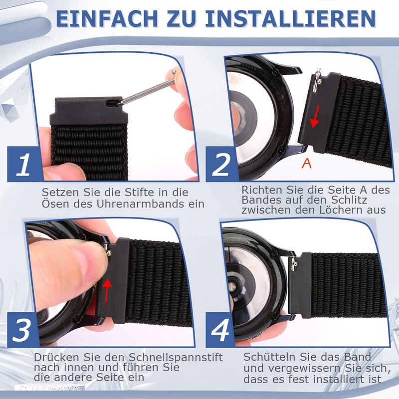 - Material: this 18 mm 19 mm 20 mm 22 mm 24 mm replacement sports strap is made of a firmer woven nylon that makes it soft, breathable, durable and robust. Thanks to the lightweight material, your wrist is not burdened even during sports. The straps are reinforced with fastening technology and do not fall off like other straps.