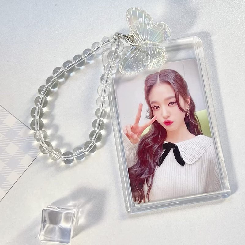 RUNRAYAY Acrylic Kpop Photocard Holder, 3 Inch Credit Id Bank Card Bus Card Student Card Pendant Keychain Badge Holder for Kids Teens Back to School (B)