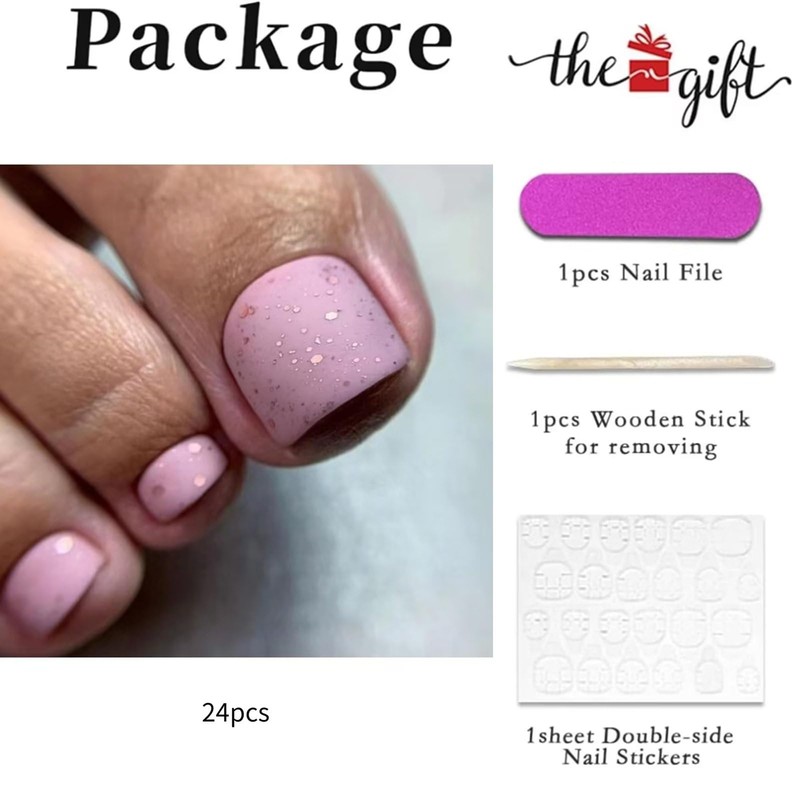 RUNRAYAY Pink Toenails Press On Nails with Glitter Bing Design, Foot Fake Nails Acrylic False Nails Tips for Women and Girls Spring Summer