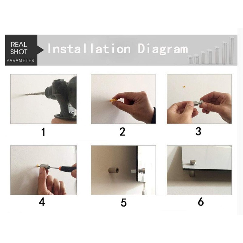 RuoFeng ステンレススチールウォールマウントガラススタンドオフホルダーネジネイル広告釘12個 16x20mm