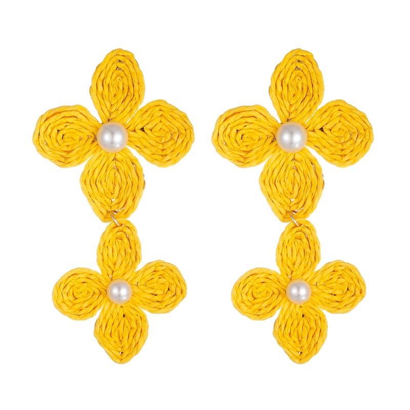 RUOFFETA Raffia Flower Earrings, Raffia Straw Wrapped Flower Drop Dangle Earrings Summer Tropical Beach Jewelry(Yellow A)