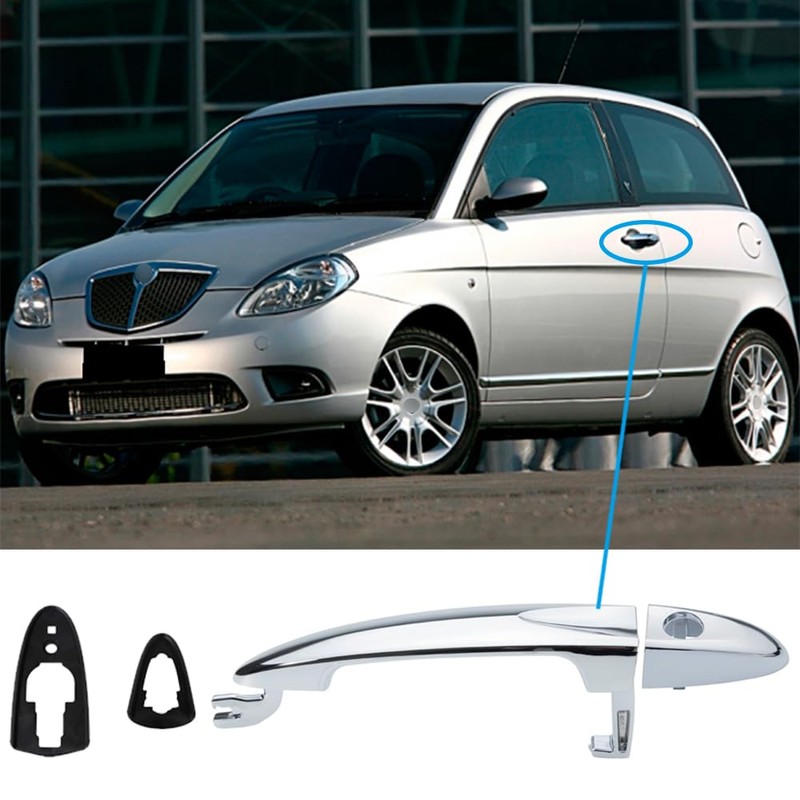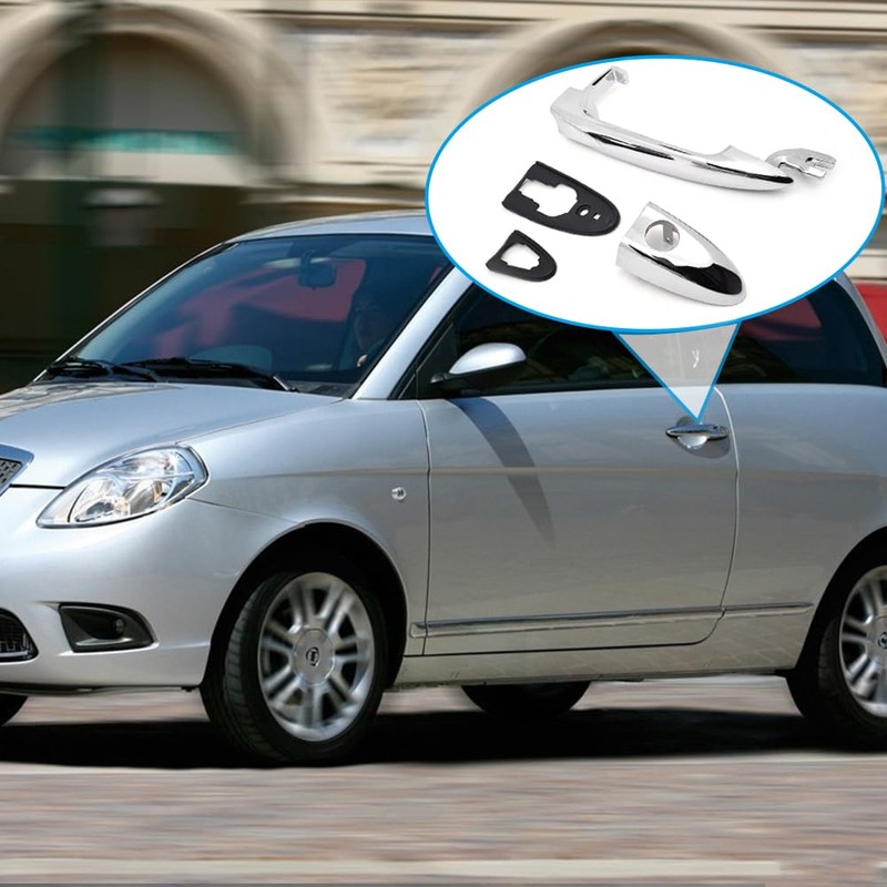 Ruolin Exterior Door Handle Car Door Handle Chrome-Plated Door Handle Replacement Kit Compatible with Lancia Ypsilon 2003-2011