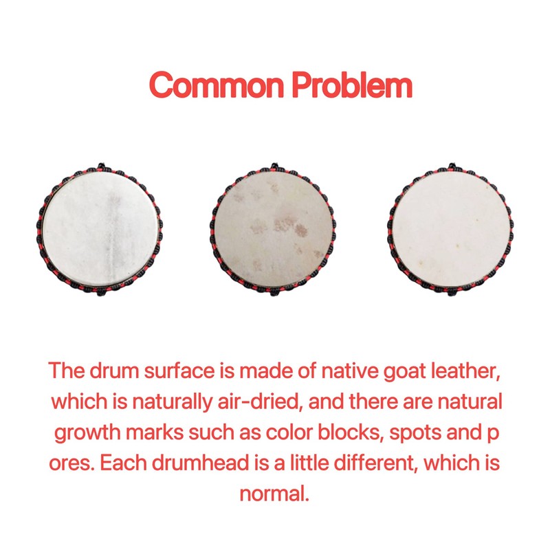 - 【Sheepskin Material】Sheepskin has excellent flexibility, enabling the drumhead to produce rich timbre variations when struck. It can withstand strikes of different intensities, capable of emitting soft, deep sounds as well as loud, full tones when hit hard, meeting the diverse rhythmic and emotional expression needs within the drum circle. Being a natural material, sheepskin has certain breathability. Prolonged drumming may cause the drumhead to heat up, and its good breathability helps the drumhead maintain stable performance, reducing timbre changes due to temperature and humidity variations and extending the drum's service life.