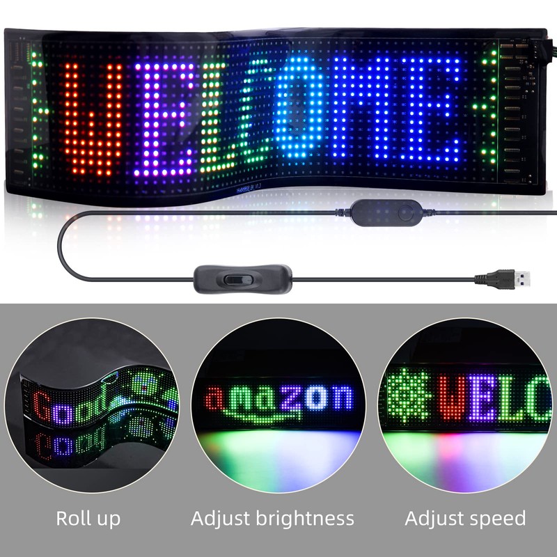 • 【Wide Application】: The flexible RGB scrolling led sign for cars, for taxis, shop signs, bars, restaurants, indoor advertising signs, concerts, Christmas gifts or wedding decorations, etc. Such as you can make the led sign to the kids room, he have a good time making up things he wanted it to say. For holiday messages on your car, door, taxi, wall of the shows or home windows, you can use the car light signs for birthdays and special announcements.