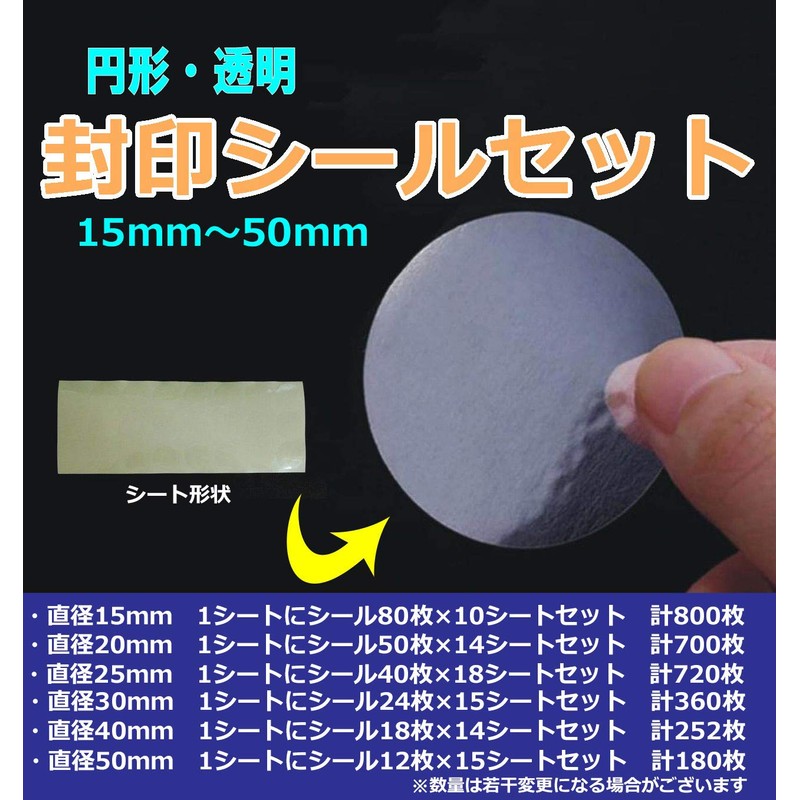 - ■ Diameter 40mm (4cm) transparent seal seal 1 sheet 18 sheets x 14 sheets total 252 pieces ■ Diameter 50mm (5cm) transparent seal stickers 1 sheet 12 sheets x 15 sheets total 180 sheets