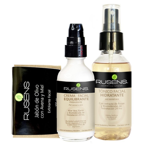 Rusens - Kit Hidratante, Kit de Hidratación Profunda para tu Piel, Contiene Jabón de Avena con Miel, Tónico Facial Hidratante y Crema Facial Equilibrante - Piel normal a Seca, Ingredientes Naturales - Rutina Facial. Mejora Elasticidad de la piel, hidrata