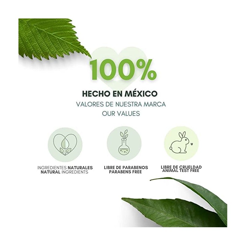 - VALORES RUSENS: Nuestro compromiso es ofrecerte productos elaborados con una cuidadosa selección de INGREDIENTES NATURALES y ORGÁNICOS, con beneficios reales para tu piel. Todos nuestros productos son libres de parabenos, petrolatos y libres de crueldad animal. Hecho en México.