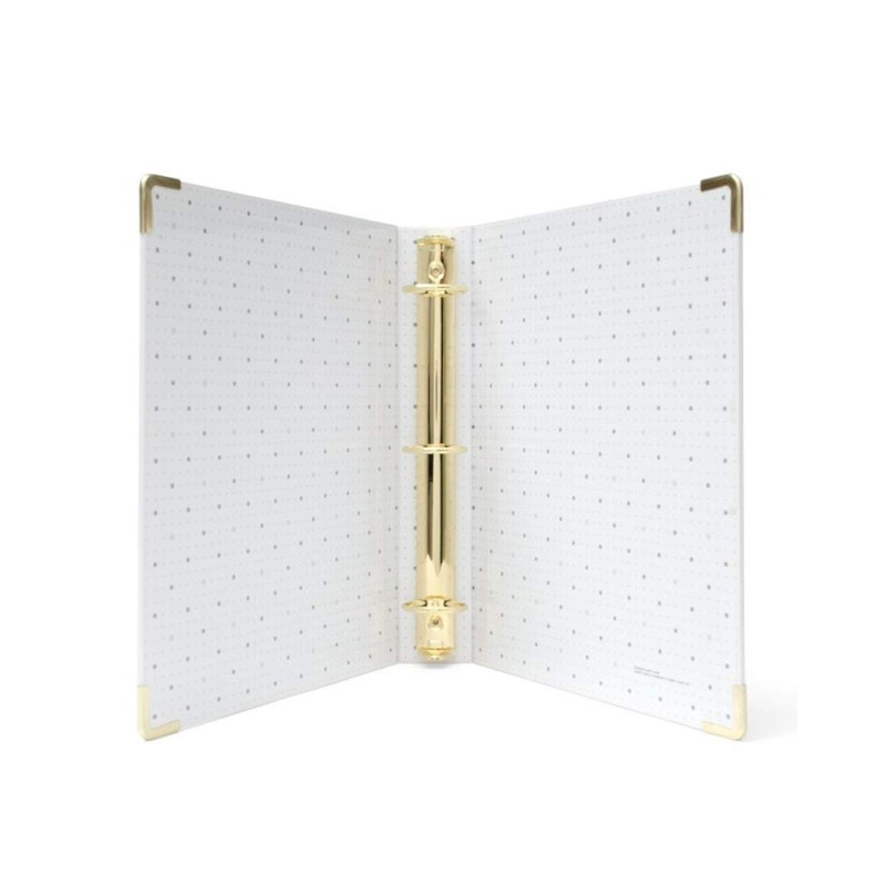 this premium signature 3 ring binder features gold toned hardware, a dry erase interior, metal-reinforced corners, and a full wrap subtle-shimmer textured book cloth cover.