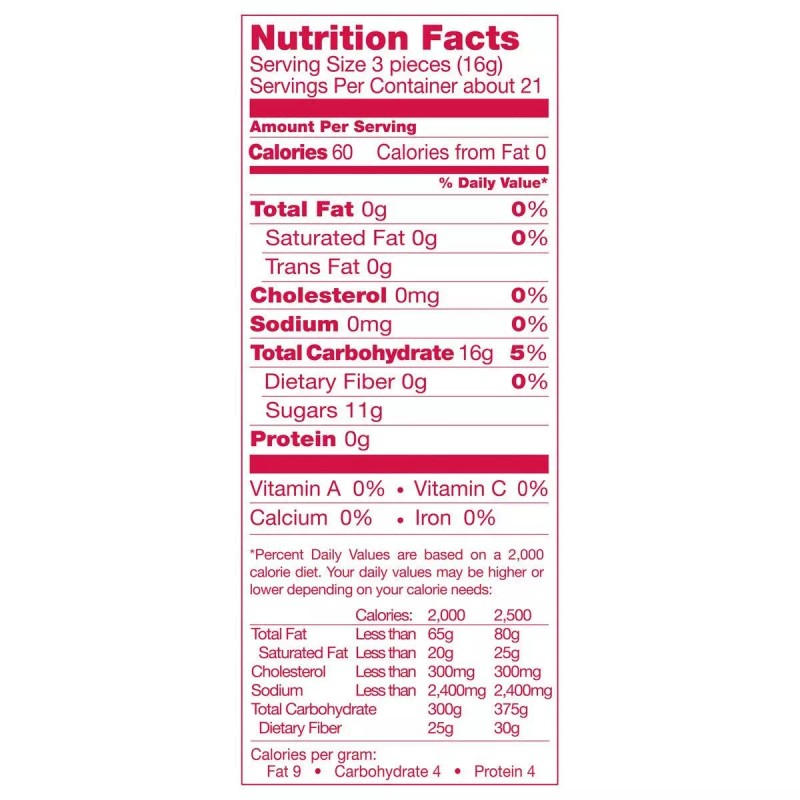 - Serving Size: 17 Grams (3 Pieces)